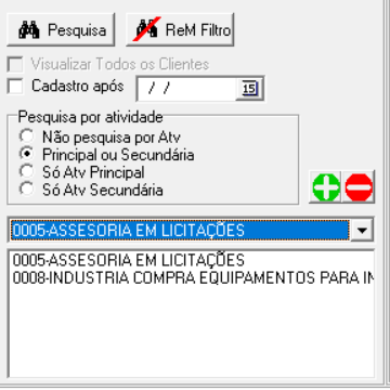 Agora é possível filtrar os clientes por atividades na parte de pesquisa adicionando as atividades que quer incluir na pesquisa para obter uma lista mais específica.